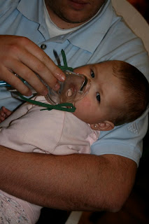 Today i took her to the doctor only to find out the she has RSV and bronchiolitis. My poor baby... it is so sad to she her sick, and her little sick cry doesn't make me feel better either... Well i gave her a breathing treatment at the docs office and then they gave me one to take home to continue treatments every 4 to 6 hours. I just hope she feels and gets better soon!!! Theres nothing that makes me happier to see a happy, healthy, smiley baby!